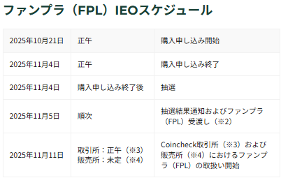 コインチェック IEO第4弾 ファンプラ(FPL)のスケジュール