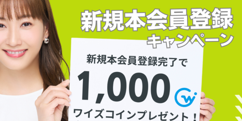 全員対象】2026/1/31まで、全員ワイズコイン1,000円もらえる